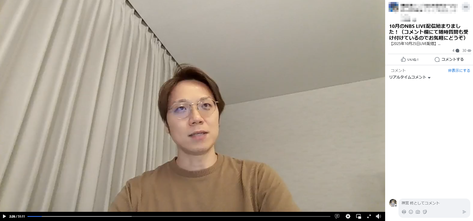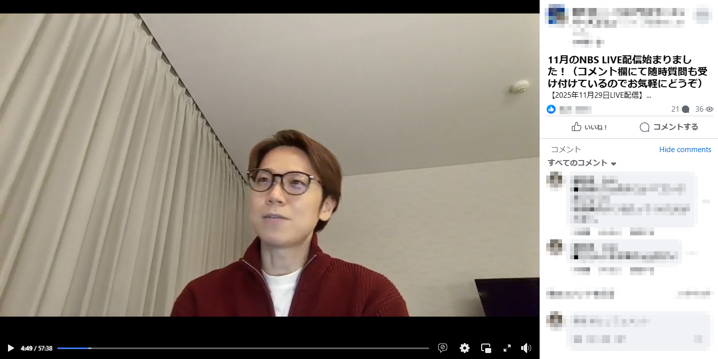 - 直近のNBS内LIVE配信は2025年11月29日に行いました。